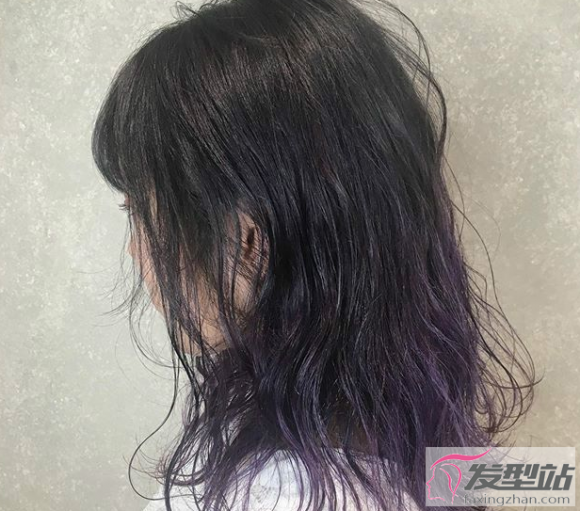紫色发尾染发发型,上下不一样的染发设计,带来非一般的视觉效果,神秘紫发色又仙又美。