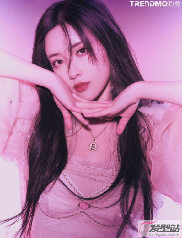 没有过多情绪表达,粉色调背景下,高级氛围拉满,美的像仙女。