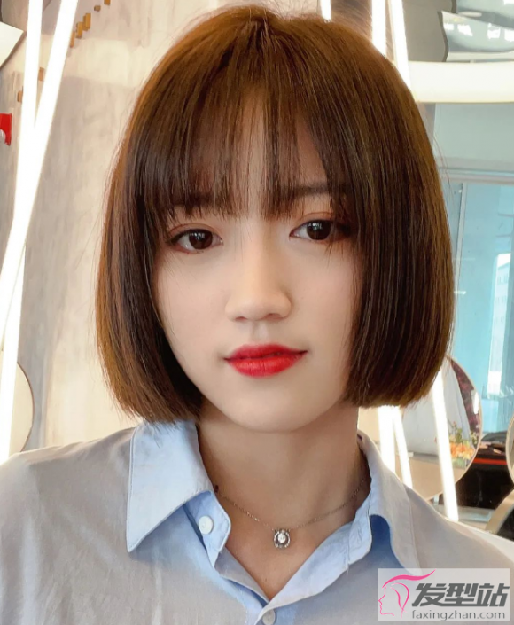 一刀切设计的短发,发型剪裁个性独特,让你人群中瞬间被看到,很适合直发的女生哦。