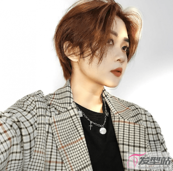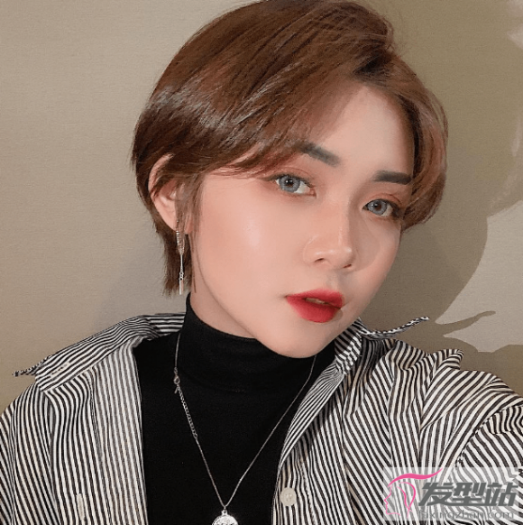染成棕色的盐系短发,长刘海随意分开,凌乱感的盐系短发,又美又飒,很有时尚范。