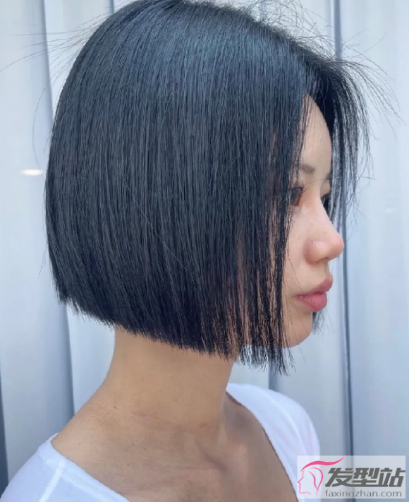一刀切短发长度不受限制,像这款齐嘴角长度对脸型、气质的要求更高,加入个性挑染更时髦。
