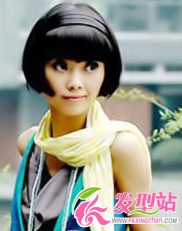 蘑菇头+齐刘海+黑色发带