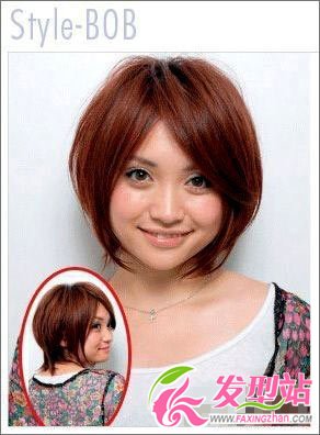 这款也是一款Bob短发,运用长刘海修饰圆圆的脸庞,顶部随意,具有层次感,而发梢部分向内弯曲,整体形成柔美的曲线,平时也很容易打理,只是随意地梳一下,擦上一点定型产品在发梢部分,就能打造出一个时尚短发。
